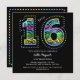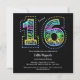 The number 16 in a crazy font filled with cool, bright colours POP on a black background. An awesome birthday invitation for an awesome birthday. See more at Zigglets here at Zazzle.