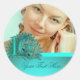 Sweet 16 elegant peacock feather template classic round sticker