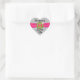 © 2013 Socialite Designs. Our fun heart-shaped sticker has a faux pink ribbon and green jewel with a silver glitter background design and moveable sparkle. Customise this sticker for any special event to use as favour stickers for birthdays, such as a Sweet 16 birthday, or other special party events, or use to seal envelopes. PLEASE NOTE THAT THE RIBBON, JEWEL AND GLITTER BACKGROUND ARE IMAGES PRINTED ONTO THE STICKER. All design elements can be moved, resized or deleted individually.