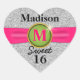 Sweet 16 Faux Ribbon Jewel Silver Glitter Heart Heart Sticker