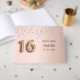 A guestbook for a girly and glamourous Sweet 16, 16th birthday party. A faux rose gold background with pink faux diamonds. Personalise and add a name and date. The name is written in dark rose gold with a modern hand lettered style script. Number 16 is written with a balloon style font.