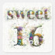 Sweet 16 Happy Birthday Wildflowers Text Square Sticker