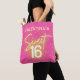 Sweet 16 Hot Pink Neon Glow Gold Glitter Birthday Tote Bag