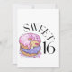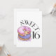This invitation showcase the words "Sweet 16" in a unique print font black letters featuring dounts with filling and sprinkles in this sweet 16 birthday theme and style. Printed on a classic, all around paper 17.5 pt thickness with an uncoated matte finish with an eggshell texture made and printed in the USA with "It's A Party" printed on the back.