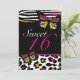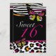 This wild bright animal print invitation featuring neon leopard spots and zebra stripes, is perfect for any Sweet 16.