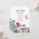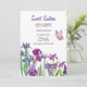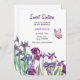 Iris flowers sweet sixteen birthday with pretty wild country flowers in purple, lavender, green leaves and more, with a brushed script typography on an elegant editable background.