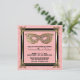 Elegant, sweet 16 pink and gold masquerade birthday party invitations with faux glitter accents- Chic faux gold metallic look scrolls decorate the corners against a trendy, girly blush pink faux glitter background with faux gold metal look square frame and matching pink glitter look border. A chic, metallic gold colour, masquerade ball mask adorns the top. Reads Please Join the Masquerade Ball Honouring with personalised name below in elegant script. Customised, masquerade Sweet Sixteen party details below, including RSVP information. Text colours and styles may be changed to suit party colours. Back has matching gold scrolls in the corners against a solid black background. Beautiful for pink and gold theme 16th birthday parties, black and pink colour schemes, or Art Deco styles, as well as Great Gatsby glam theme parties.