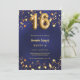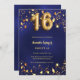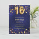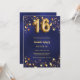 A modern, stylish invitation for a Sweet 16. A navy blue background, decorated with golden stars. The blue colour is uneven. Personalise and add your name and party details.