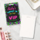 A unique neon glow party sweet 16 birthday VIP pass lanyard invitation.