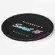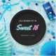 Cool and modern 16th birthday party paper plates with "Sweet 16" written in hot pink and teal script with a neon lights effect against a back background. Customise with her name and birthday date.