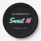 Sweet 16 Neon Lights Black Birthday Party Paper Plate