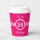 Elegant sweet 16 with white stripes on pink Birthday Cups. Text can be personalised for other ages, Birthdays, company meetings, business, party and more!