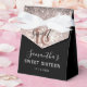 Celebrate a Sweet 16 with this elegant favour box, featuring a sleek black background and a bold bubble-style "16" in stunning faux rose gold. The top flap is adorned with sparkling rose gold glitter, adding a touch of glamour and sophistication. Perfect for party favours, this stylish design creates a memorable keepsake for your guests. Customisable