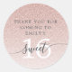 Sweet 16 Pink Glitter Ombre Thank You Custom Name Classic Round Sticker