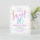 Sweet 16 Pink Gold Blue Glitter Dots Birthday Invitation