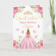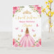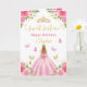 Celebrate her Sweet 16 with this elegant princess birthday card featuring a blonde girl in a sparkling blush pink ball gown, illustrated gracefully from the back. Soft florals, fluttering butterflies, and a regal gold crown create a magical and feminine look perfect for this milestone birthday. The blush pink and gold color palette adds timeless charm, making this a beautiful keepsake card she’ll treasure long after the celebration.