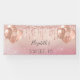 For an elegant Sweet 16, 16th birthday party. A blush pink, rose gold gradient background. Decorated with faux glitter drips, paint dripping look, and balloons. Personalise and add the name. Perfect both as a welcome banner or as party decor.