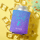 Surprise your guests with a Sweet 16 Purple Teal Glitter Party Favour Can Cooler. The modern glam design has a background with teal and purple ombre faux glitter. The text is "sweet 16" in bright teal trendy handwritten lettering script. Personalised with name in white minimal letters. Design is on both sides. CLICK PERSONALIZE TEMPLATE OPTION AND ENTER NAME.