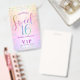 “Happy Sweet 16.” Add some extra fun to your favourite Sweet 16 birthday girl’s celebration party whenever you pass out these special birthday VIP pass keepsake badges! Rainbow glitter script typography, along with festive turquoise, purple pink and gold confetti, overlays a rainbow ombre foil metallic background. Personalise the custom text with your daughter’s name on the front and the party date and venue on the back. Great for the budding fashionista who loves modern glitter and glam and guaranteed to add style to her special party! Matching invites, stickers, plates, napkins and other birthday goodies are also available in this trendy and special collection.