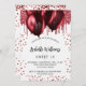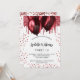 For an elegant Sweet 16, 16th birthday. A stylish white background. Decorated with red faux glitter and balloons. Personalise and add a name, age and party details. The name is written with a hand lettered style script