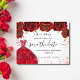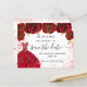 A girly and trendy Save the Date for a Sweet 16, 16th birthday party. A white background decorated red roses, red faux glitter sparkles and a red dress. Personalise and add a date and name/age. The text: Save the Date is written with a large trendy hand lettered style script.