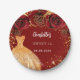 For a Sweet 16, 16th birthday party. A red background with faux gold glitter dust, a golden dress and red roses, florals. The name is written with a modern hand lettered style script. Personalise and add your name and a date.