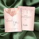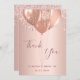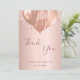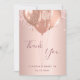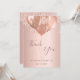 A thank you card for a Sweet 16, 16th birthday. A rose gold faux metallic looking background colour. With faux glitter drips, paint dripping look and balloons. On front large dark rose gold coloured hand lettered script and the text: Thank You, your text, title and a date.