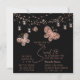 Sweet 16 Rose Gold Butterfly Chic Modern Birthday Invitations features elegant rose gold butterflies with string lights on a black background with your Sweet 16 Invitation information below. Personalise by editing the text in the text boxes. Designed for you by ©Evco Studio www.zazzle.com/store/evcostudio