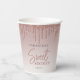 Modern and elegant sweet 16 birthday party paper cups you can easily customise with your party details. Featuring glitter drip with rose gold gradient background and script typography.