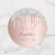 Girly and feminine confetti for your Sweet 16, 16th birthday party table setting. A rose gold faux metallic, foil looking background decorated with faux rose gold and silver glitter drips. Personalise and add a date and name/age. Dark rose gold coloured letters. Some confetti chips with name and date, others with the text: Happy Birthday written with a trendy handlettered script with swashes. Add your own photo on two of the chips.