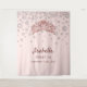For a Sweet 16, 16th birthday. Rose gold, pink background decorated with faux diamonds and a rose gold coloured tiara, crown. Personalise and add a name and text, date. The name is written in dark rose gold with a modern hand lettered style script. Can be used as a welcome banner, party wall decor or as a photo booth backdrop.