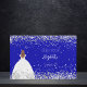 A guest book for a feminine and glamourous Sweet 16, 16th birthday party. A trendy royal blue background with faux glitter, sparkles and a girl wearing a princess dress, ball gown. Personalise and add your name, and age/date. The name is written with a hand lettered style script