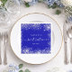 A napkin for a girly and glamorous Sweet 16, 16th birthday party. A royal blue background with elegant faux silver dust. Personalize and add a name. White letters. Sweet sixteen is written with a modern hand lettered style script with swashes.
