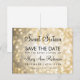 Sweet 16 "Save The Date" design with Gold Glitter Lights, and custom names and date text.