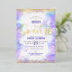 “Happy Sweet 16”. Send out this stunning, sparkly, girly, festive, modern, personalised, custom real gold foil party invitation for an event to remember. Sparkly real gold foil, tiny confetti dots and handwritten script overlay a soft purple watercolor background. Personalise the custom text with your daughter’s name as well as other party details. Great for the budding fashionista who loves modern glam and guaranteed to add stylish fun to her special party!