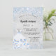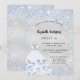 For an elegant Sweet 16, 16th birthday. A faux silver metallic looking background. Decorated with blue faux glitter dust and a dress for a winter wonderland themed party. Personalise and add a name, age and party details. The name is written with a hand lettered style script