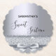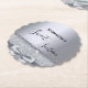 Modern, stylish and glamourous for a girl's Sweet 16th birthday party. A faux silver metallic looking background with an elegant faux silver bow, ribbon and sparkle. The text: Sweet Sixteen is written with a modern black hand lettered style script. Template for a name.