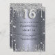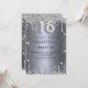 A modern, stylish and glamourous invitation for a girl's Sweet 16, 16th birthday party. A faux silver looking background, decorated with glitter dust. Personalise and add your name nad party details. Number 16 is written with a balloon style font, script.