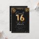 Adorable sweet 16 birthday party invitations in a black and gold 16 balloon design with golden tropical leaves. Customise with your party details and mail out to family and friends inviting them to celebrate her 16th birthday!