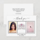 An elegant, simple Sweet 16 Thank You card personalised with your own photo. Add 3 of Your birthday photos, vertical size, a date, name, and the thank you note. A chic white background with black text and a white frame. The text: Thank you on the front and your names on the back are written with a stylish hand lettered script with swashes.