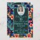 Sweet 16 Tropical Collage Hibiscus Deep Blue Invitation