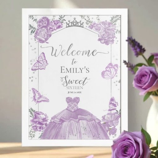 Sweet 16 Welcome Sign Butterfly Lavender Dress