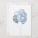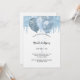 A white background. Decorated with light blue faux glitter drips, paint dripping look and balloons. Personalise and a name and party details.