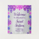 Winter snowflake sweet 16 birthday featuring textured snowflakes in shades of purple, pink and blue on a silver gradient background