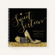 Black and Gold High Heel Stiletto Shoes design birthday party guest book that doubles as an advice and well-wishes notebook with plenty of room for guests to write inspiring notes for the teenager celebrating their sixteenth birthday.
