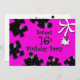 Great 16th Birthday party invitations for the young lady who happens to love puzzles. Sweet sixteen with black puzzle pieces and white polka dots on fuchsia pink background and large white ribbon