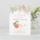 Sweet As A Peach Floral Gold First Birthday Invitation