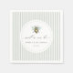 Sweet as can bee, baby shower paper napkins. Cute watercolor honey bee with soft silver sage green and white stripe pattern background.