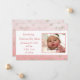 Announce the arrival of your new bundle of joy with these custom birth announcements. These wonderfully designed birth announcements feature a light pale pink background scattered with white flower graphics, a white strip accross the centre highlights the baby's birth details. Use the custom wording template to insert all the details and a photo of baby. envelopes incuded....