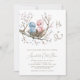 Announce your little one's arrival with our adorable Baby Bird Gender Reveal Invitation! Featuring a charming baby boy bird with a bowtie and a sweet baby girl bird with a pink bow nestled in a nest atop a branch adorned with pretty pink and blue flowers. It's the perfect way to share the excitement of your gender reveal celebration!